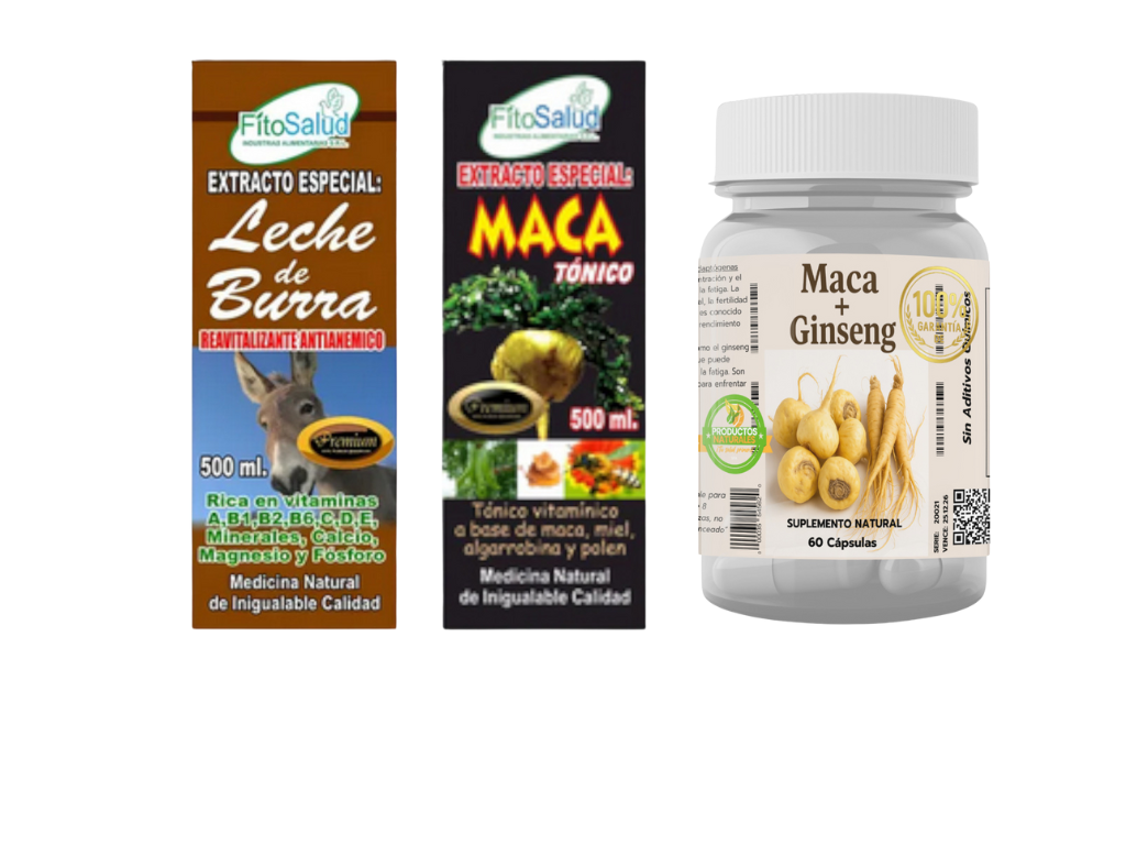 Pack , tónico leche de burra + maca con un frasco de Maca+ Ginseng