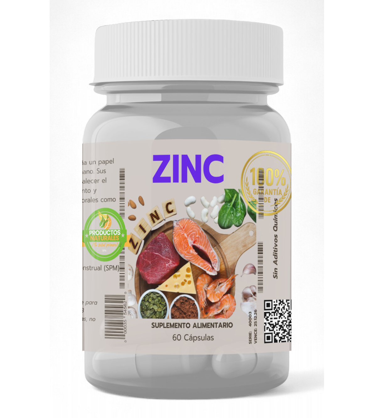 El Zinc es un mineral esencial clave para múltiples funciones corporales. Apoya el sistema inmunológico, acelera la cicatrización, favorece la fertilidad y contribuye al metabolismo celular. Su acción antioxidante y regeneradora lo convierte en un suplemento indispensable para el bienestar diario. Recomendado especialmente para personas con defensas bajas, caída del cabello o problemas dérmicos.
